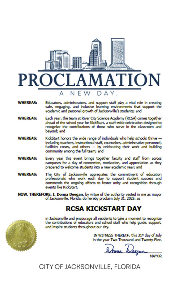 “I have taught in Duval County for over a decade, and can honestly say that I couldn't be happier to be part of the RCSA learning community. My son has had a tremendous experience as an elementary and middle school student there. He has been far more challenged academically than he ever was at our neighborhood school. We have a diverse student body, yet are small enough to feel like a family. There are only great things to come in the future of this unique, amazing place.”